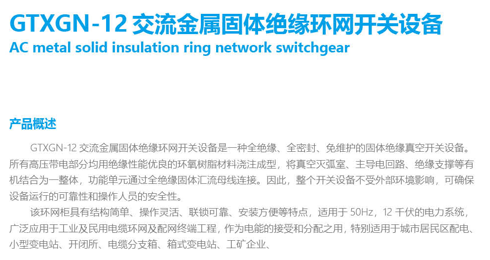 GTXGN-12交流金屬固體絕緣環(huán)網(wǎng)開關(guān)設(shè)備