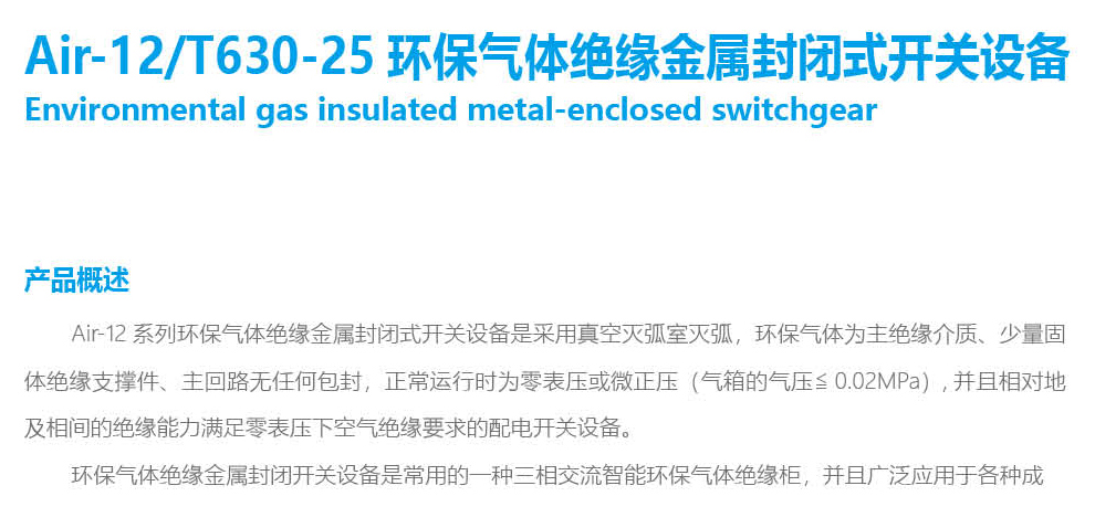 Air-12/T630-25環(huán)保氣體絕緣金屬封閉式開關(guān)設備
